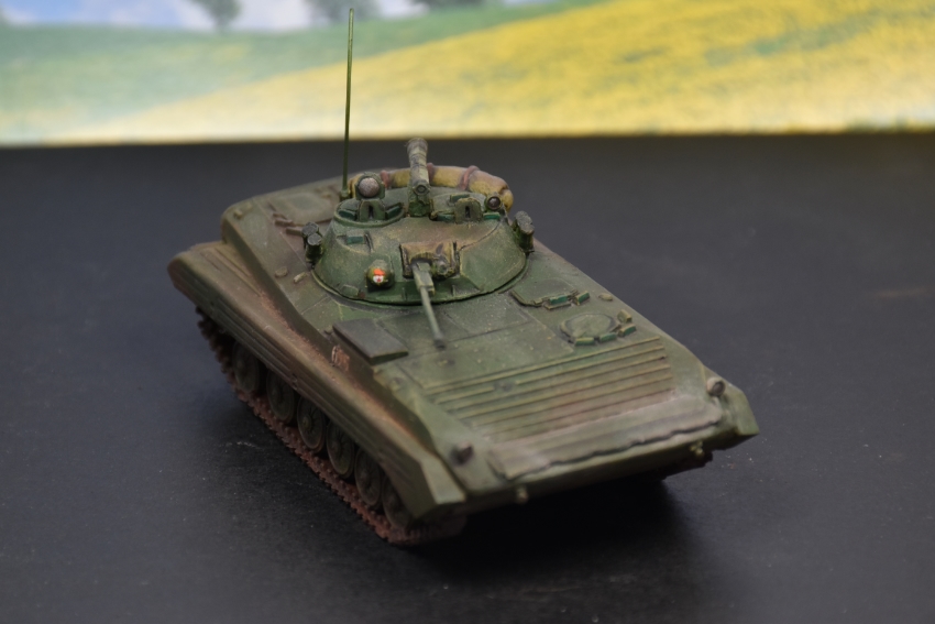 A second-generation amphibious infantry fighting vehicle, the BMP-2 entered service with the Soviet Army in 1980. Broadly similar to his predecessor the BMP-1 from the 1960s, the BMP-2 introduced significant changes, the more important were an enlarged two-man turret for the commander and the gunner and a new armament composed of a 30mm autocannon and and external ATGM launcher capable of firing the AT-4 Spigot or the AT-5 Spandrel anti-tank missiles.