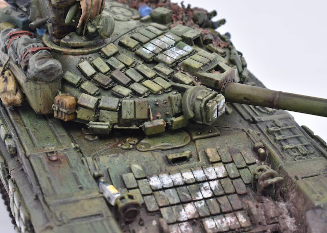 Oddly for such an ubiquitous tank, it is my first kit built from it. This is the ModelCollect kit labelled T-72B1 with ERA. Globally a very good kit with scope for personal improvements and a more "field" rendering. Looking at the photos from Ukraine, the scope of possible variations seems infinite... just what I like 😎